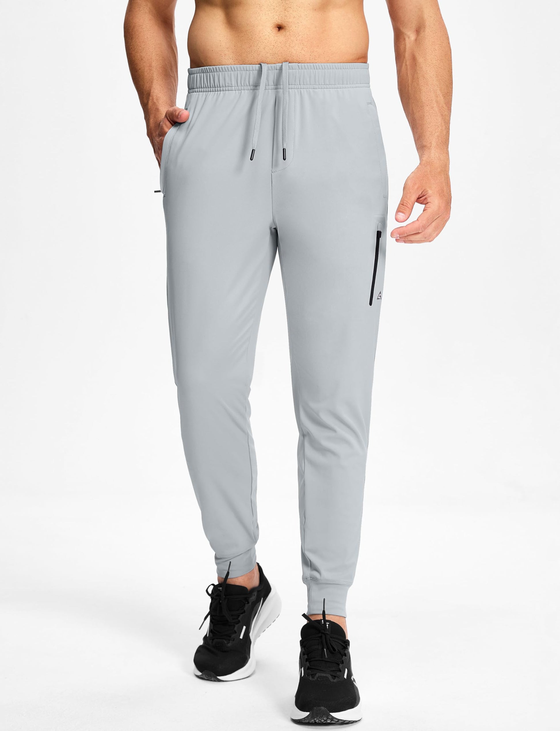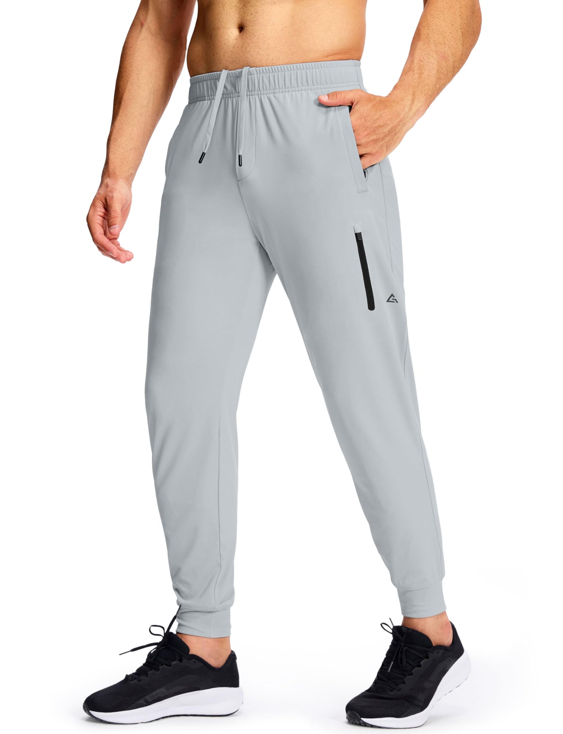 MUZEGE Men's Athletic Joggers Sweatpants Lightweight Running Light Grey Size L